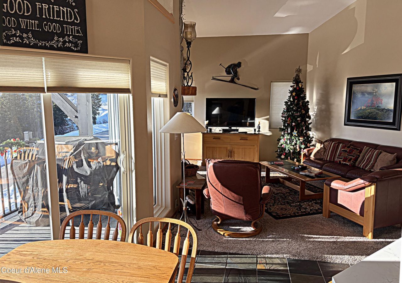 Ski-In/Ski-Out Highland Village Condo at Schweitzer. This spacious 4 BR/4 BA condo features an open floor plan with expansive windows that fill the home with natural light and showcase spectacular lake and mountain views. Hydronic in-floor heating ensures year-round comfort, while the inviting living room gas fireplace creates the perfect après-ski atmosphere. The home includes a live-in kitchen and dining area ideal for entertaining, plus a covered deck where you can relax and take in the stunning scenery. Additional conveniences include a heated driveway, a 2-car tandem garage, and dedicated ski lockers.After a day on the slopes, unwind in the outdoor community hot tub while enjoying sweeping mountain views.Highland Village has recently undergone significant exterior upgrades, including new windows, siding, and a new roof installed within the past two years, adding value and peace of mind.